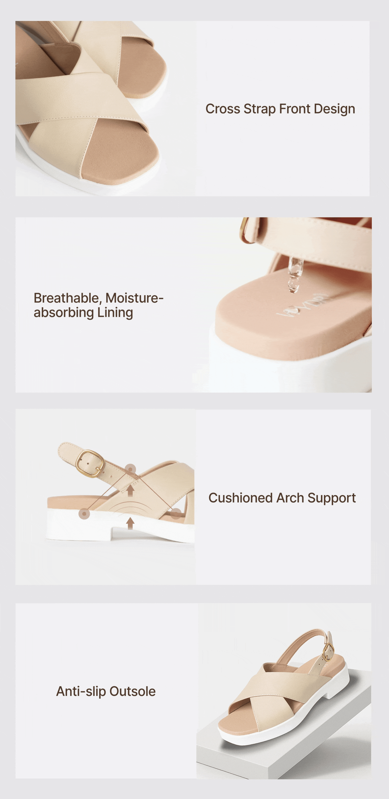- Sole Height: 20mm at front+35mm at heel