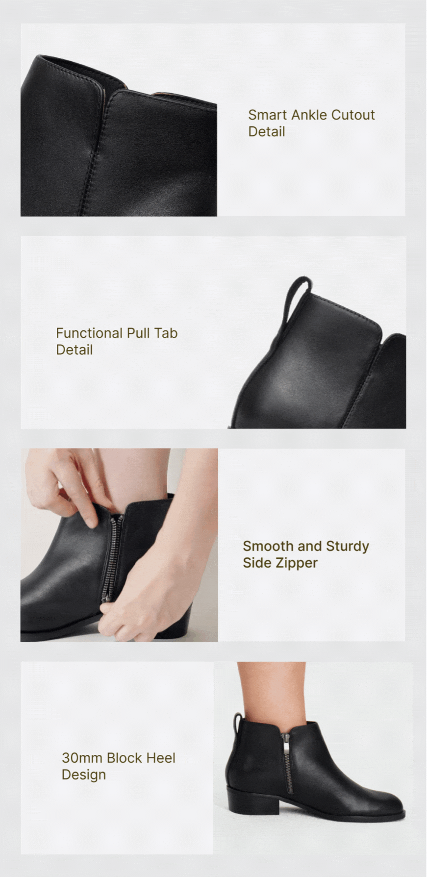 - Super comfortable and stable block heel at 30mm height